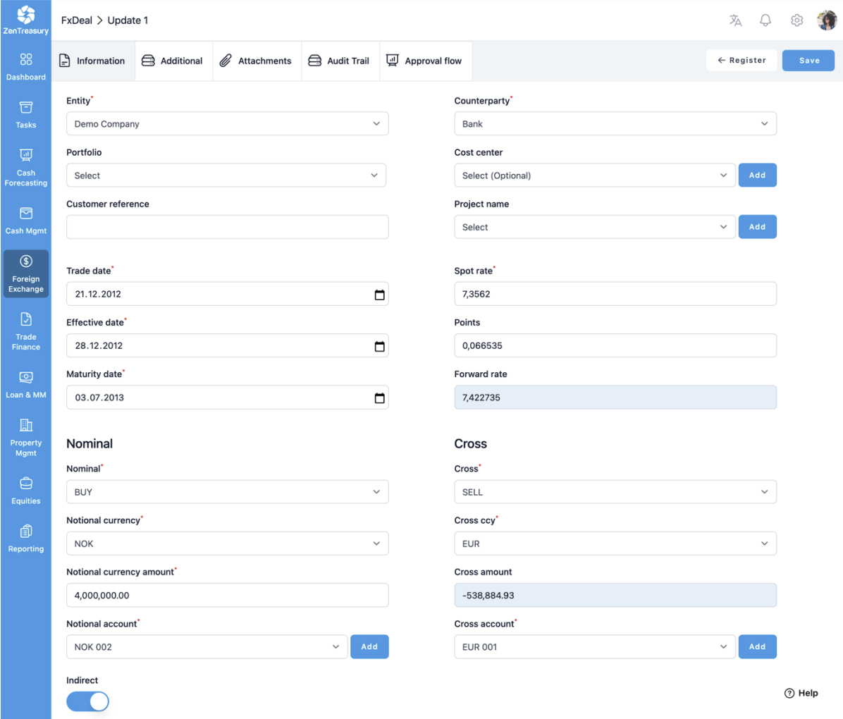 Amount: The entered (signed) amount from the left-hand side of the Deal desk.