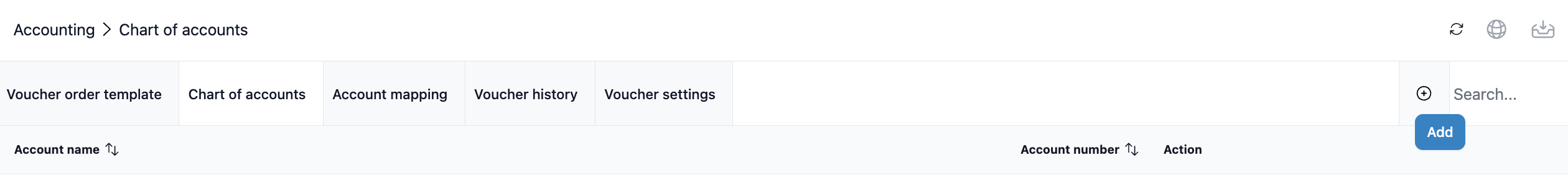 Start by navigating to Accounting > Chart of accounts and select "Add".