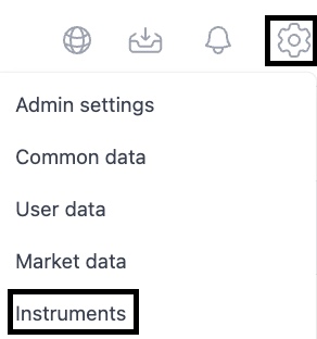 Before creating a loan agreement, you need to confirm that the instrument type has been correctly set. There are debt instruments created in the system by default. You can see the instrument register by clicking the cogwheel top right and select 'Instruments'.