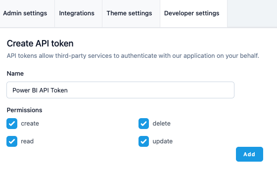 2. Enter a token name, select permissions, and click "Add"