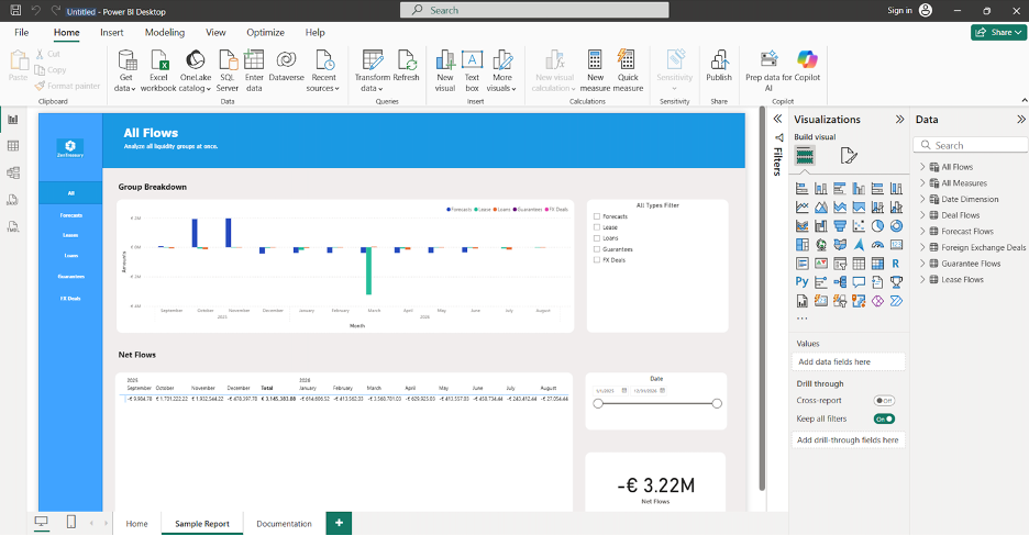 Power BI will begin loading and refreshing data. This may take a few seconds and up to 30 minutes, depending on the dataset size. If the process fails or stalls, please contact ZenTreasury Support via Support Portal by leaving the support ticket.