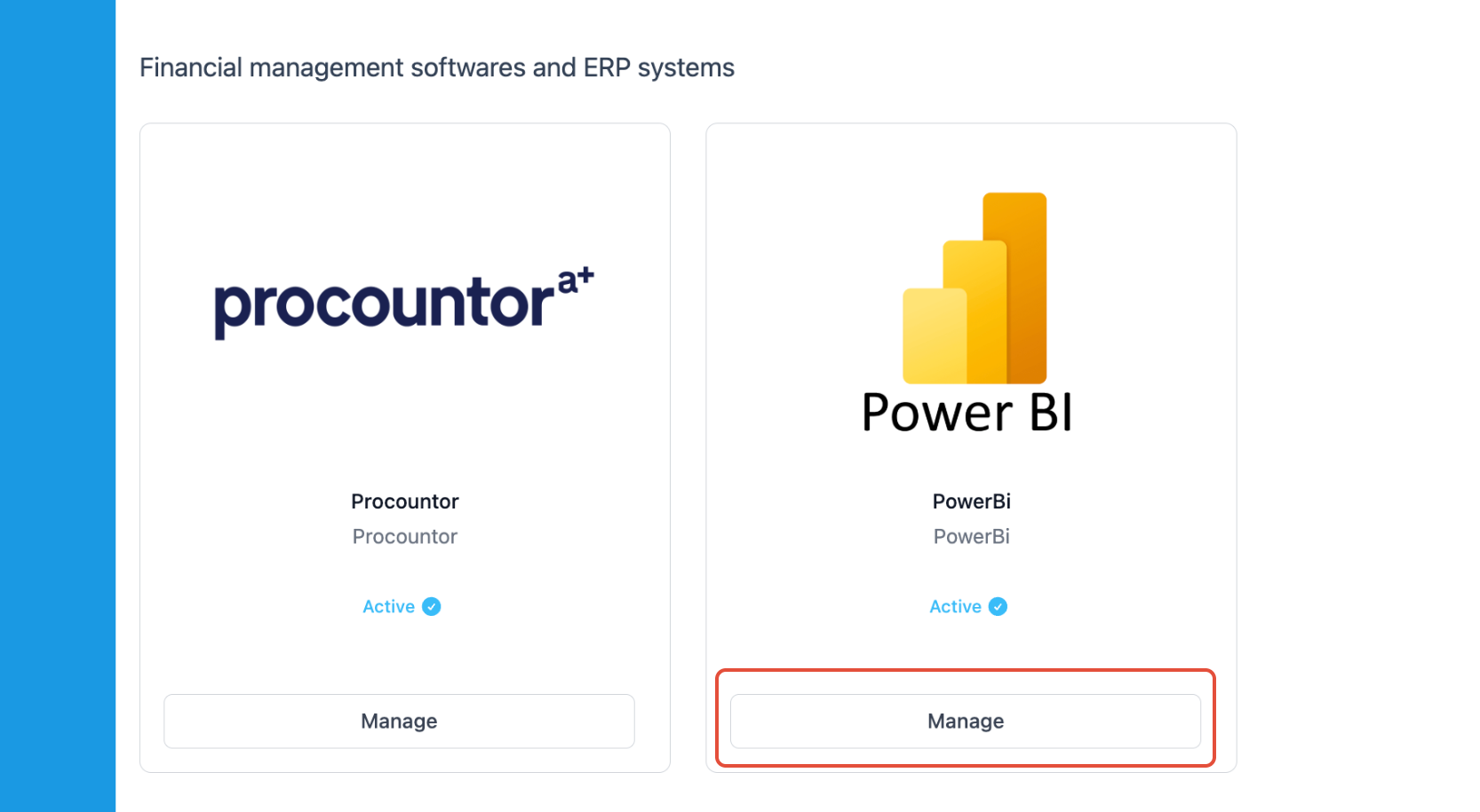 Navigate to Settings > Admin Settings > Integrations > Powe BI and click Manage and follow the instructions. Download the Power BI Template File available in your ZenTreasury environment.